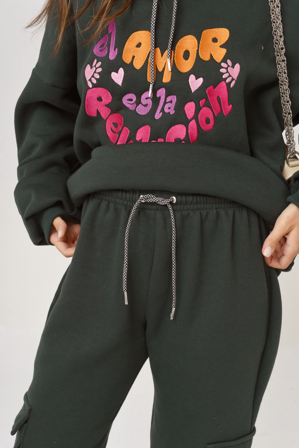 Confeccionado en frisa invisible, este jogger cuenta con una cintura ancha elastizada que se adapta perfectamente a tu figura, brindando confort y estilo.